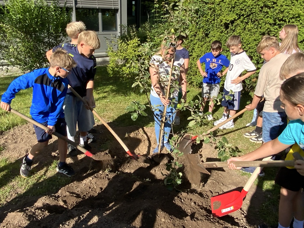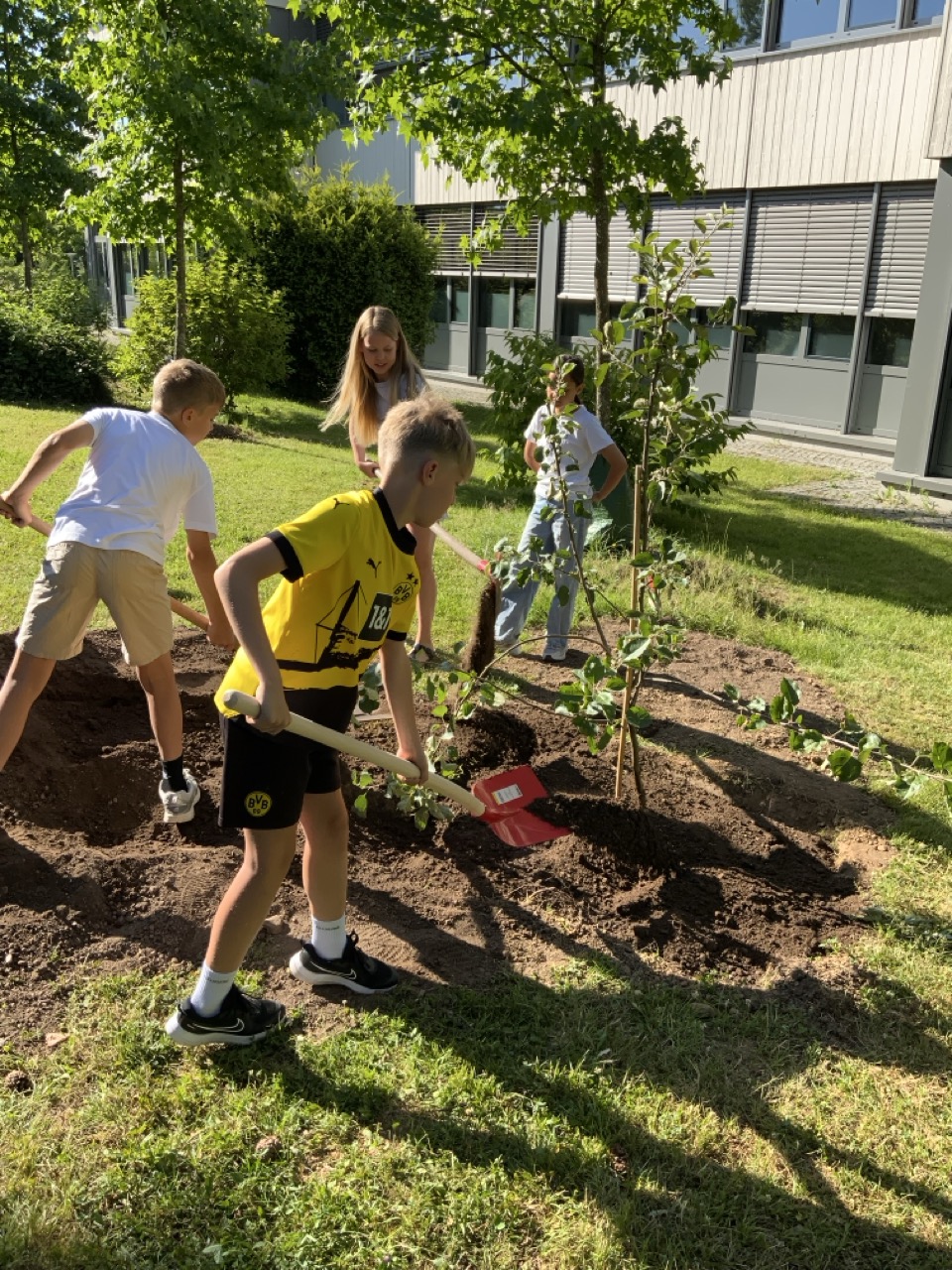 Auch für kommende fünfte Klassen ist das Pflanzen weiterer Obstbäume auf dem Schulgelände geplant. Wir freuen uns auf eine reiche Ernte in vielerlei Hinsicht.