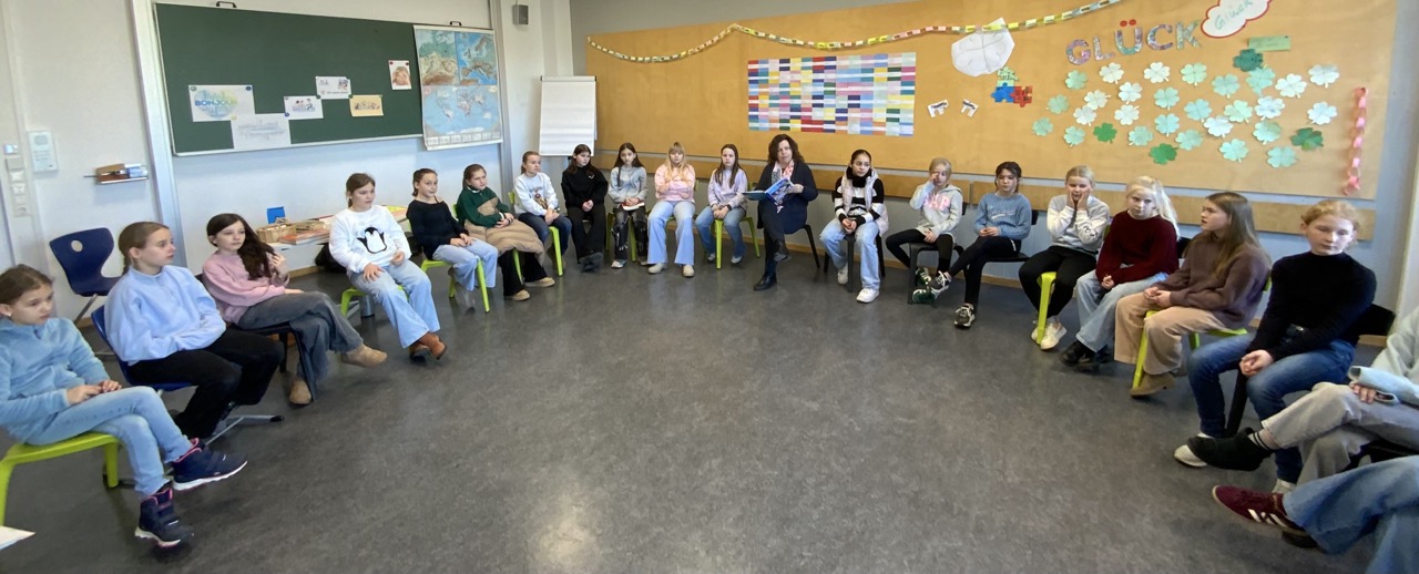 Im anschließenden Gespräch und auf dem gemeinsam gestalteten Klassenposter wurde deutlich, dass Vielfalt in Kultur und Sprache ein Gewinn für uns alle ist und als Motto mit auf den Weg gegeben wurde.