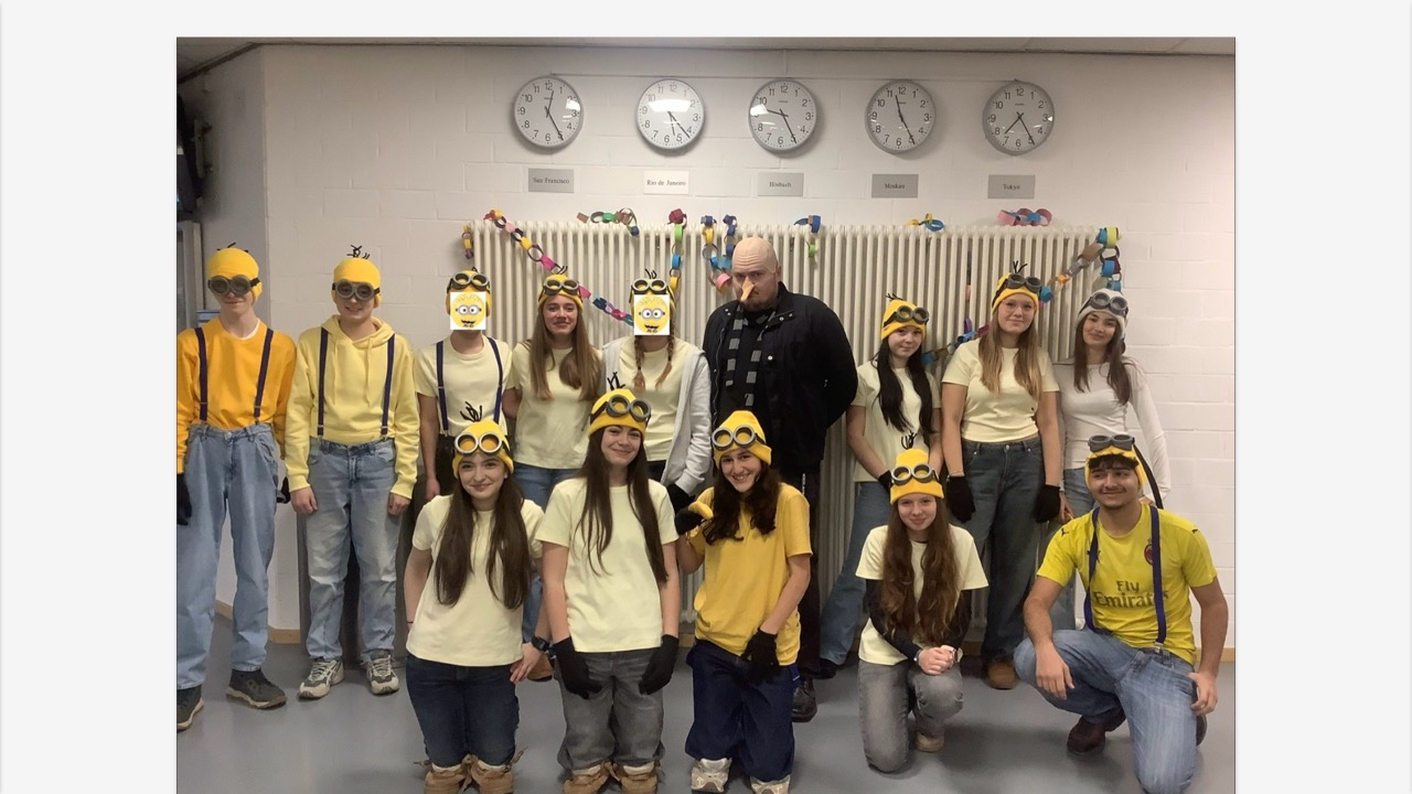 Aber nicht nur die „Jüngsten“ gaben sich dem närrischen Treiben hin. Im Rahmen der engagierten SMV wurde im Vorfeld mit Hilfe der Mini-SMV der K-Bau geschmückt und verbreitete so die ganze Woche über karnevalistische Stimmung. Außerdem überlegten sich unsere Schülersprecherinnen für die ganze Woche täglich wechselnde Kleidungsmotti. Von Gruppenkostümen über Pyjamas bis hin zu Overdressed-Outfits sowie Kostümierungen in Tracht war praktisch alles vertreten, was in der närrischen Zeit angesagt ist. Die Vielfalt der Verkleidungen sorgte für eine bunte Abwechslung. Besonders kreativ stachen dabei die Gruppenoutfits hervor, die für ihren außergewöhnlichen Ideenreichtum mit Sonderpreisen ausgezeichnet wurden, darunter die Minions der Klasse 8c, zwei fantasievoll gestaltete, selbstgebastelte Roboter aus der Klasse 6e sowie eine Gruppe von Schülerinnen und Schülern der Klasse 10f, die mit viel Humor in die Rolle ihrer Lehrkräfte schlüpften.