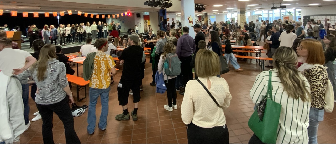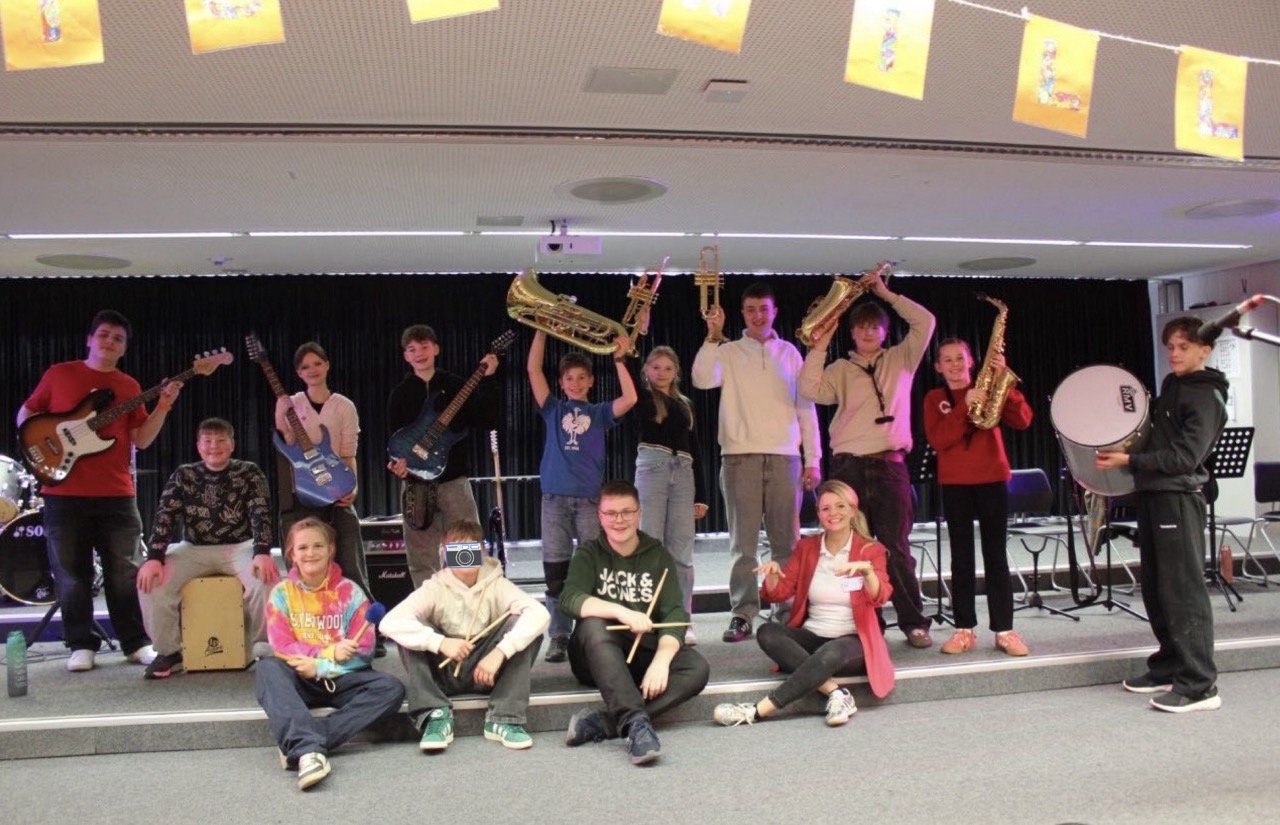Musikalisch wurde der Tag der offenen Tür von einem abwechslungsreichen Programm auf der Bühne begleitet: Die selbstbewussten Chorklassen 5c und 6c, die fetzige Rockband und der stimmungsvolle Schulchor begeisterten das Publikum mit ihren Songs und sorgten für eine großartige Stimmung in der voll besetzten Aula.