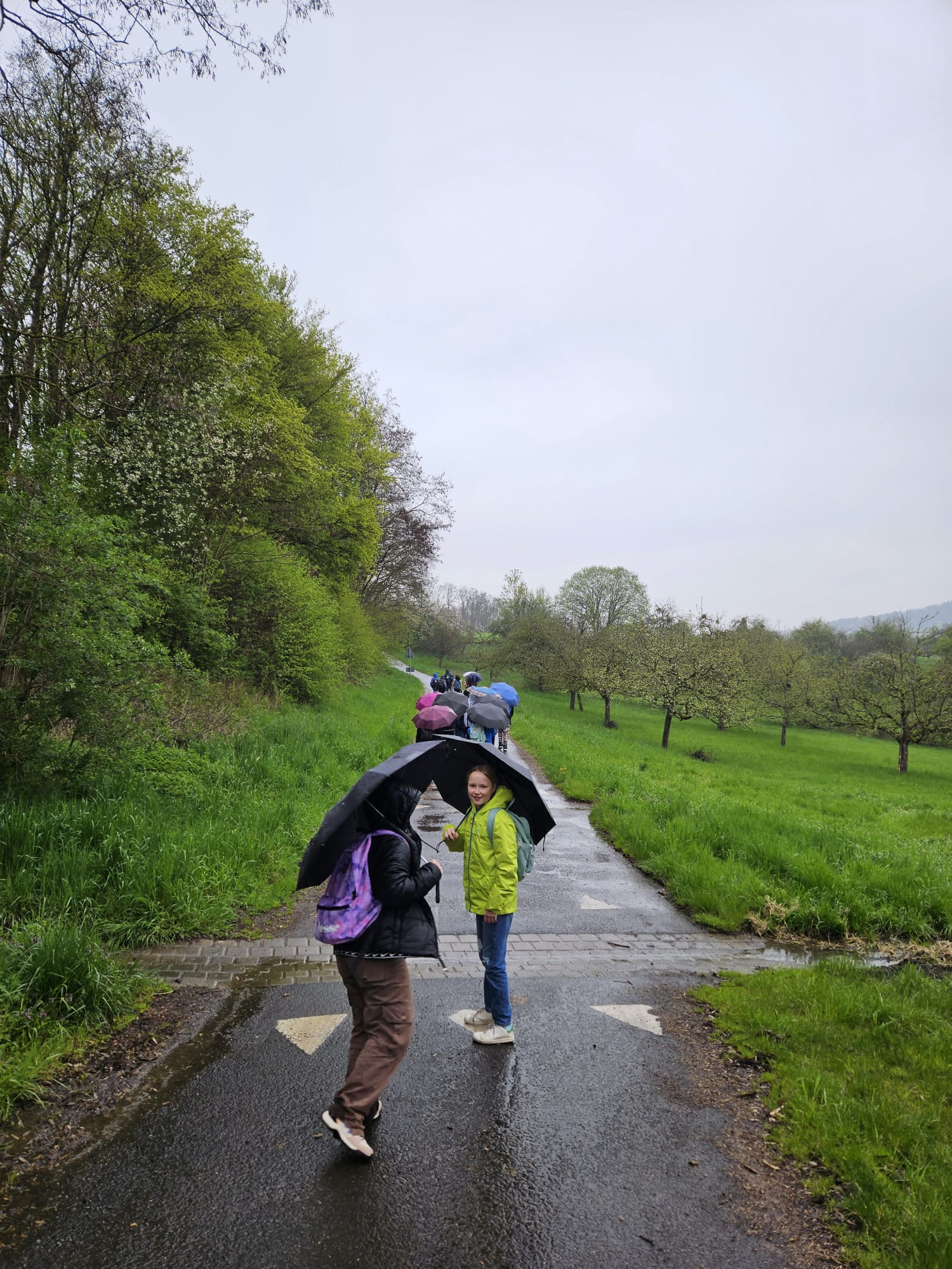 Zuerst stand eine kleine Wanderung von ca. 60 Minuten auf dem Programm. Diese fand leider zum größten Teil im Regen statt. Davon wurde die Stimmung jedoch nicht getrübt, sodass alle gut gelaunt und voller Vorfreude auf dem Bauernhof ankamen. Hier wurden wir schon erwartet und durften erst einmal eine Frühstückspause einlegen.
