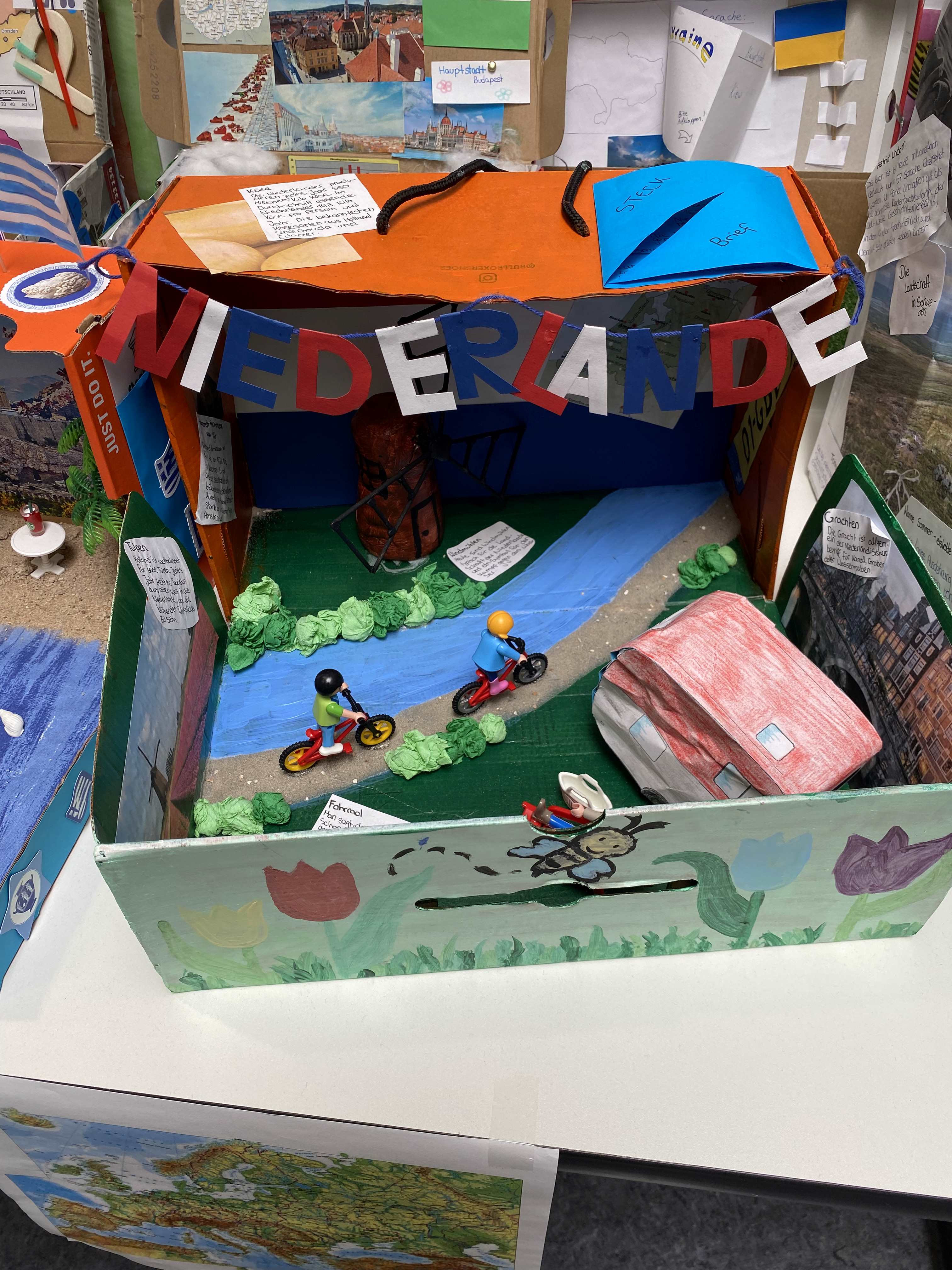Die Klasse 6b führte in diesem Zusammenhang über mehrere Wochen ein Projekt mit dem Titel „Europa im Schuhkarton“ durch.
