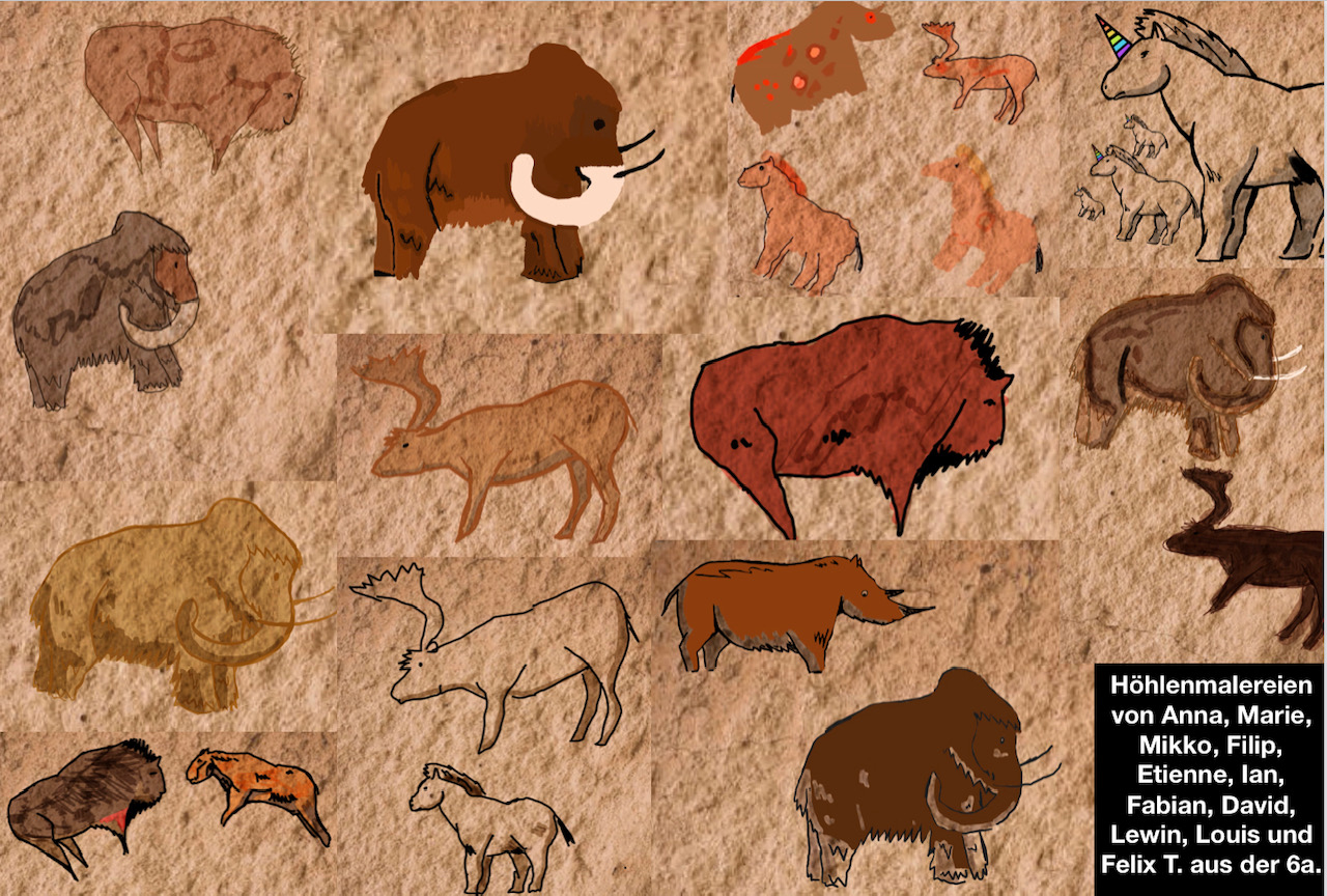 Mit viel Spaß haben die SchülerInnen der Klasse 6a im Geschichtsunterricht vor den Herbstferien mit modernsten Mitteln Höhlenmalereien angefertigt. Hintergrund war die Behandlung von Archäologie und Altsteinzeit sowie vor allem die nun notwendige Schulung von grundlegenden Apps auf dem Ipad.