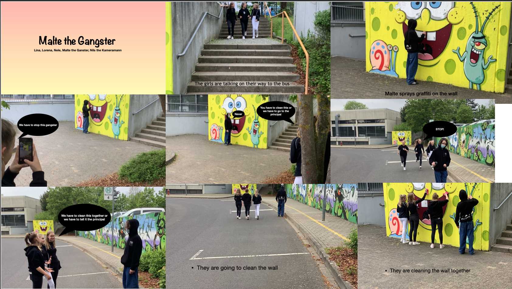 Im Rahmen des Englischunterrichts haben die Schülerinnen und Schüler der Klasse 7b eigene Foto Stories entworfen.
