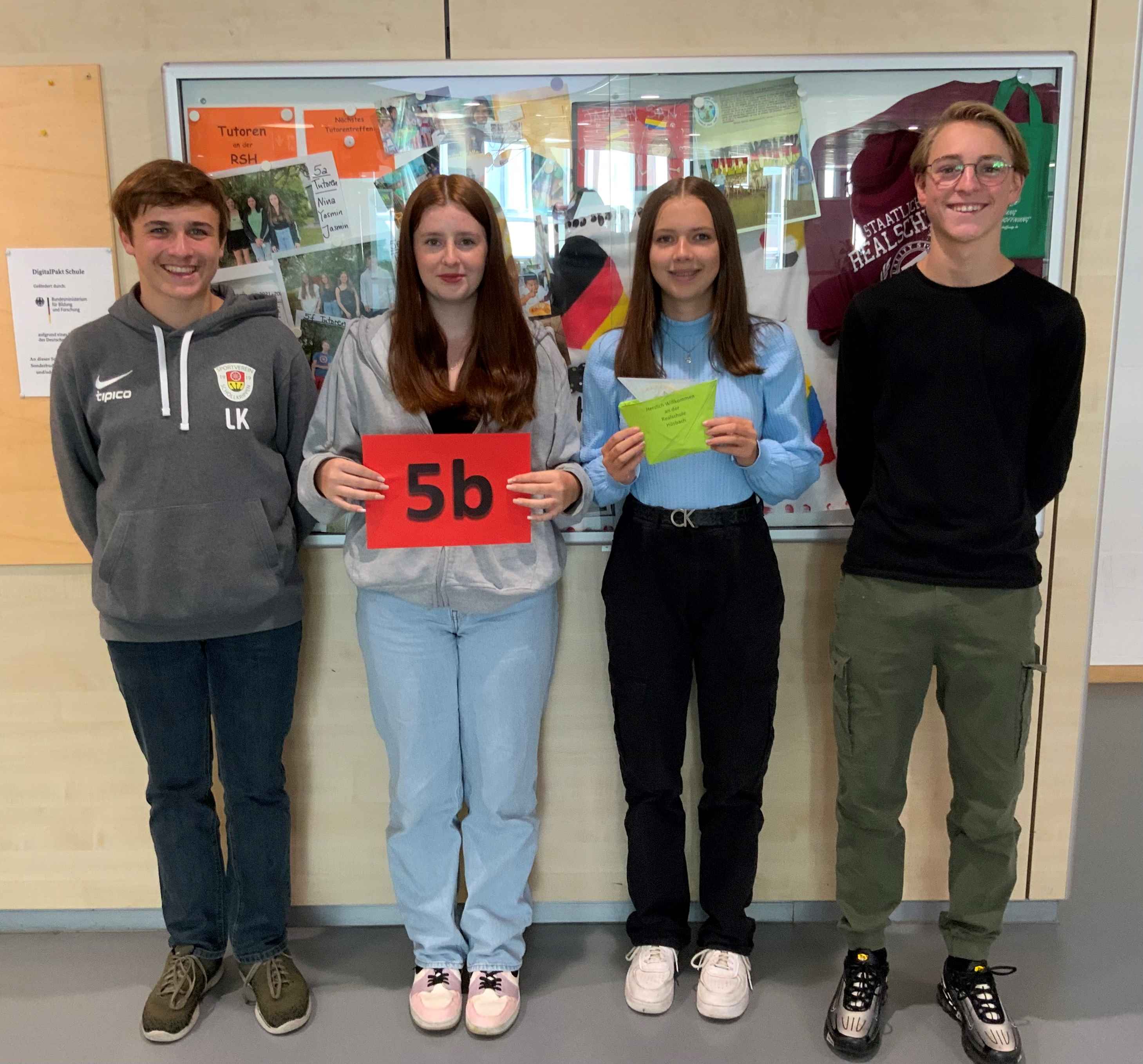 Schließlich wurden die einzelnen SchülerInnen der Sportklassen 5a (Klassleitung Herr Müller) und 5b (Herr Englert), der Chorklasse 5c (Frau Martin) und schließlich die Klassen 5d (Herr Keßler), 5e (Frau Klameth-Bergmann) und 5f (Frau Diergardt-Schulz) namentlich auf die Bühne gerufen und begrüßt. Auch die 22 Tutoren aus den neunten Klassen stellten sich kurz vor und empfingen ihre Schützlinge, bevor sie ihre zugeordnete Klasse ins Klassenzimmer begleiteten, um Kennlernspiele und eine kurze Schulhausführung durchzuführen. Unsere Tutoren sind besonders zu Beginn des Schuljahres für die fünften Klassen zuständig, um ihnen den Übergang von der Grundschule zur „großen“, weiterführenden Schule zu erleichtern.