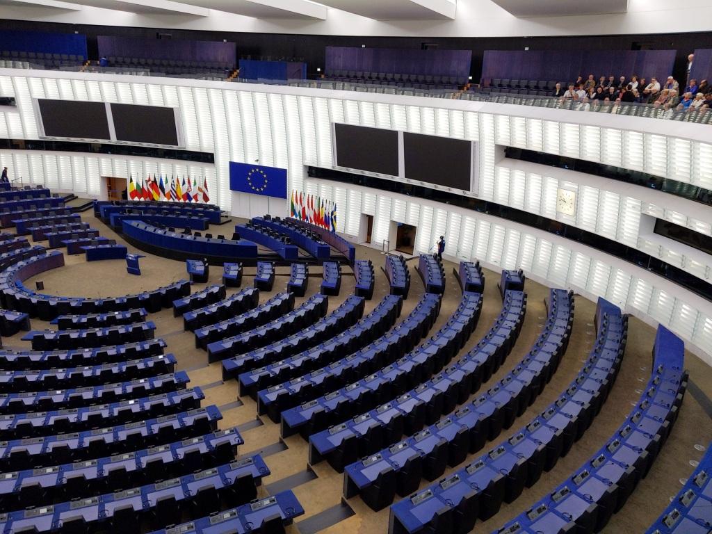 Bild 9: Plenarsaal des Europaparlamentes mit Dolmetscherkabinen