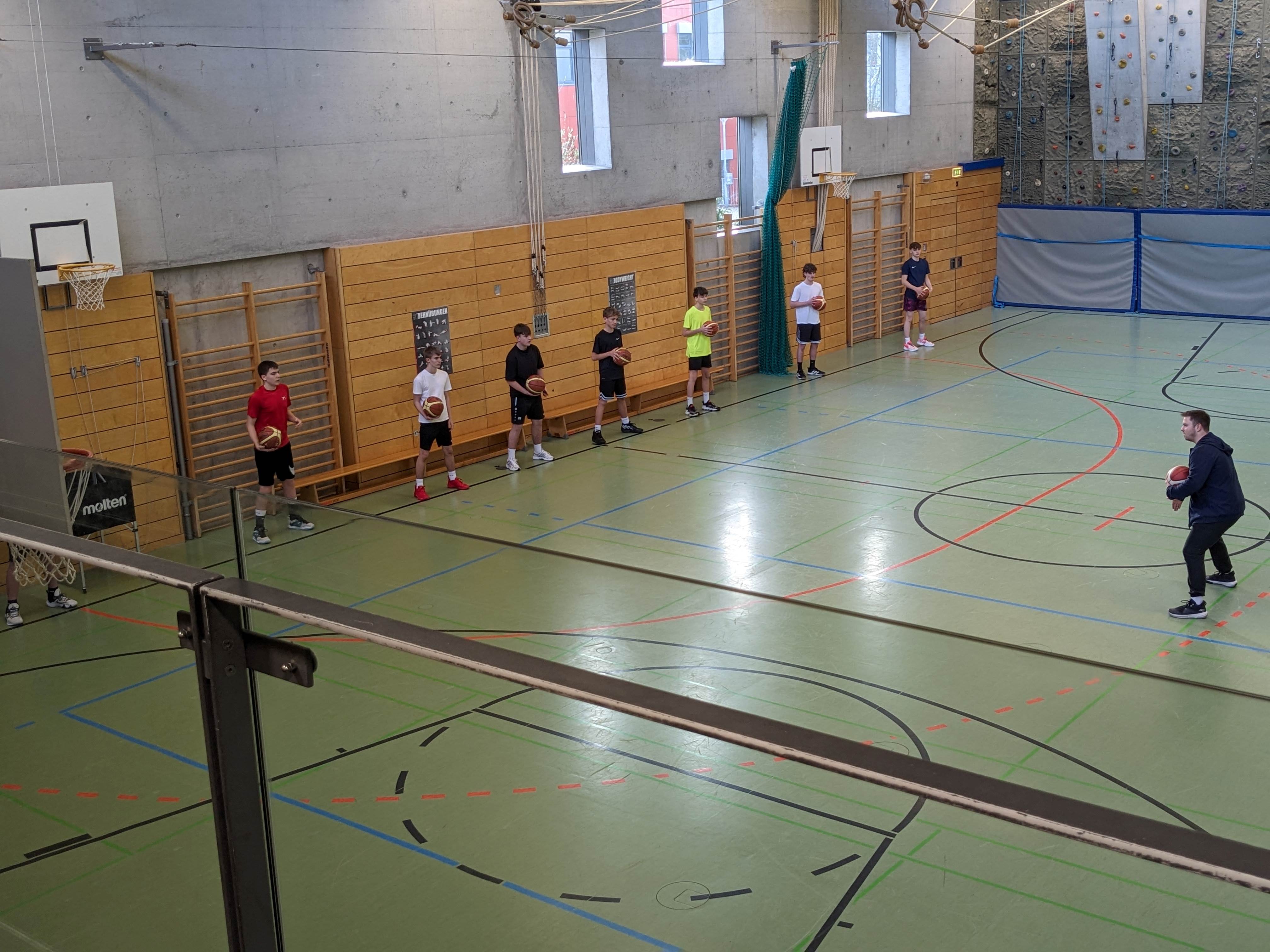 Spätestens seit dem Gewinn der Weltmeisterschaft 2023 der deutschen Nationalmannschaft gewinnt die Sportart Basketball immer mehr an Beliebtheit. Auch die Realschule Hösbach nahm mit einer Wettkampfmannschaft an der Regionalmeisterschaft Jungen III in Aschaffenburg teil. Im Vorfeld des Turniers besuchte Florian Rüger, JBBL-Trainer (Jugendbasketball-Bundesliga) der Würzburg Baskets, die Schule und führte ein Training mit der Wettkampfmannschaft sowie der Sportklasse 5a durch. Außerdem beantwortete er den Schüler ihre Fragen rund um das Thema Basketball. Im anschließenden Wettkampf konnte die Mannschaft das Gelernte gleich anwenden und einen guten 2. Platz erreichen.