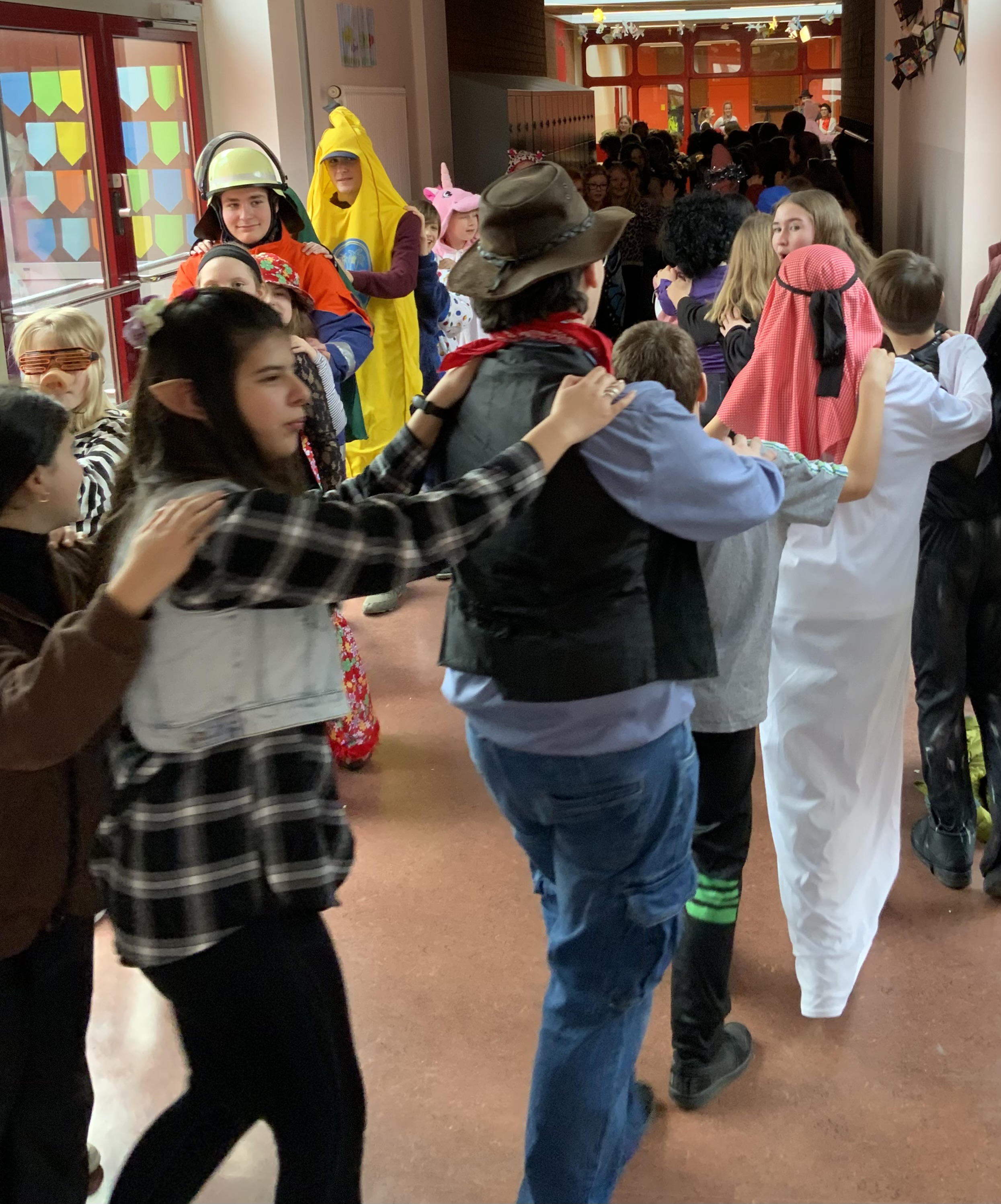 Aber nicht nur die „Jüngsten“ gaben sich dem närrischen Treiben hin. Im Rahmen der SMV haben sich unsere Schülersprecherinnen und Schülersprecher die ganze Woche über täglich wechselnde Kleidungsmottos überlegt. Von Kindheitshelden bis Businessoutfits sowie eine Reise durch die letzten Jahrzehnte gemäß dem Motto: „Back to the 90´s, 80´s, 70´s, …“ war praktisch alles vertreten, was in der närrischen Zeit Rang und Namen hat. Die Vielfalt der Outfits sorgte für eine bunte Abwechslung. Besonders kreativ stachen dabei die Gruppen- und Einzeloutfits heraus, welche für den außergewöhnlichen Einfallsreichtum mit besonderen Preisen prämiert wurden.