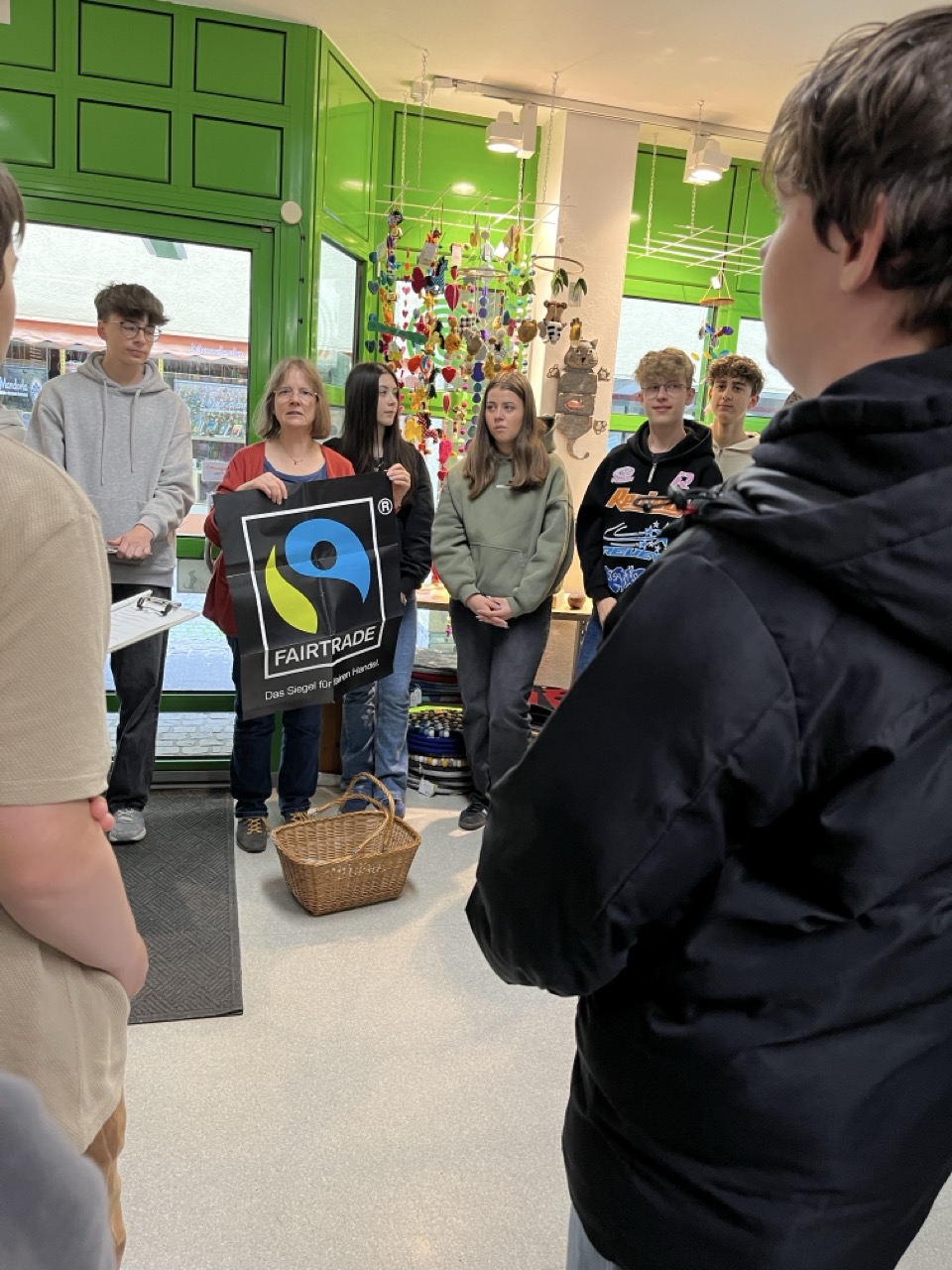 Die Klasse 8a lässt sich im Aschaffenburger Weltladen „fairzaubern“