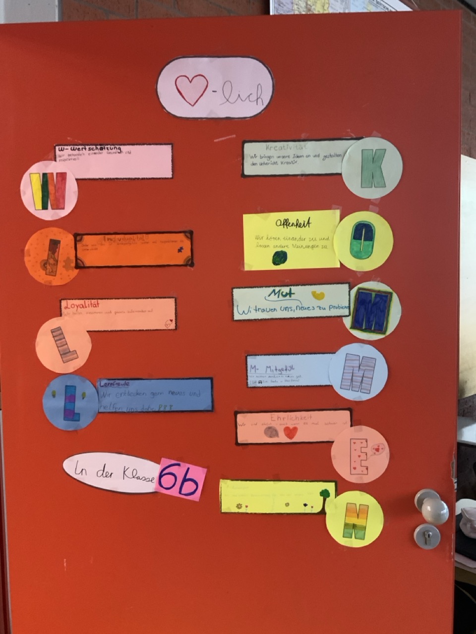 Die Stärkung der individuellen Persönlichkeit und ein freundliches Miteinander sind Herzensangelegenheiten aller Lehrkräfte. Frau Elbert startete mit ihrer Klasse 6b mit einem Werte-Akrostichon in das neue Schuljahr, um gemeinsame Werte und eine harmonische Klassengemeinschaft weiter zu stärken.