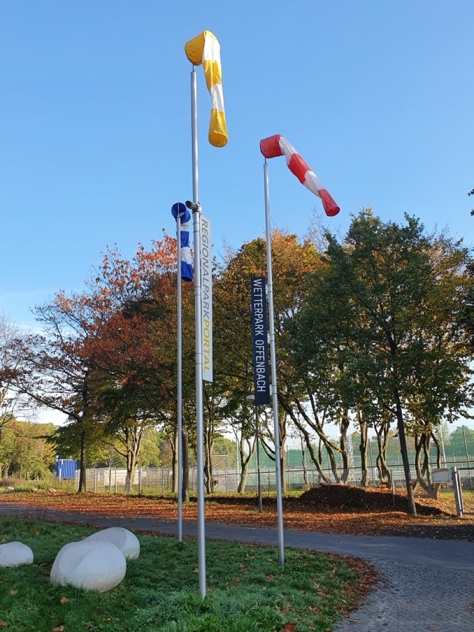 Aufgeteilt in zwei Gruppen wurden wir von zwei Experten durch das ca. 20.000 Quadratmeter große Parkgelände geführt. Zahlreiche Exponate (zum Beispiel eine vollautomatische Wetterstation des Deutschen Wetterdienstes, ein Blitzbaum oder ein 13 Meter hoher Sicht-Turm mit Blick auf Offenbach und den Taunus) sowie Informationsgrafiken stellten die komplexen Zusammenhänge des Wetters anschaulich und einfach dar. Außerdem konnten wir an verschiedenen Stationen Experimente durchführen und so Wetterelemente wie Luftdruck, Wind und Sonneneinstrahlung im wahrsten Sinne begreifen.