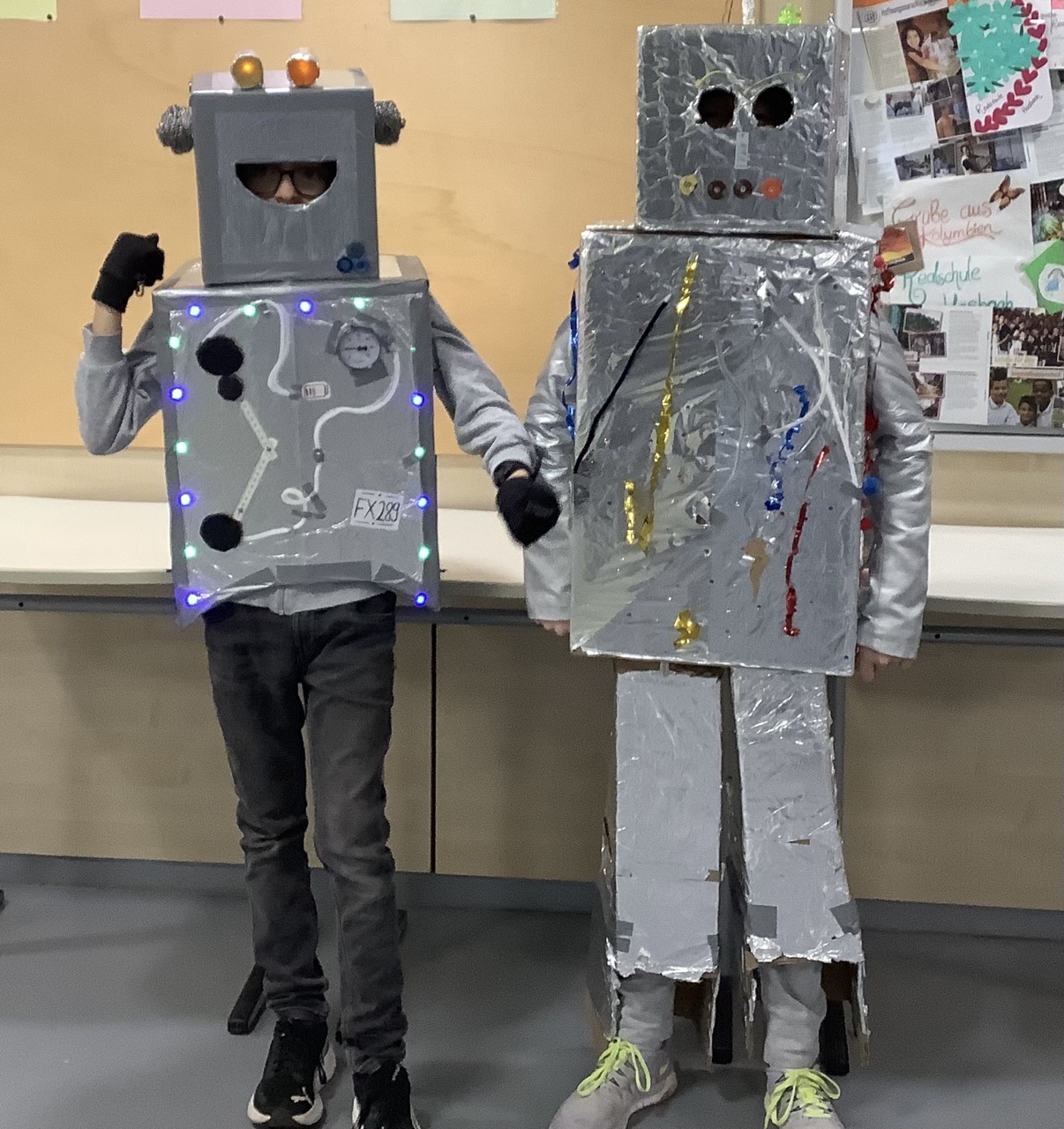 Aber nicht nur die „Jüngsten“ gaben sich dem närrischen Treiben hin. Im Rahmen der engagierten SMV wurde im Vorfeld mit Hilfe der Mini-SMV der K-Bau geschmückt und verbreitete so die ganze Woche über karnevalistische Stimmung. Außerdem überlegten sich unsere Schülersprecherinnen für die ganze Woche täglich wechselnde Kleidungsmotti. Von Gruppenkostümen über Pyjamas bis hin zu Overdressed-Outfits sowie Kostümierungen in Tracht war praktisch alles vertreten, was in der närrischen Zeit angesagt ist. Die Vielfalt der Verkleidungen sorgte für eine bunte Abwechslung. Besonders kreativ stachen dabei die Gruppenoutfits hervor, die für ihren außergewöhnlichen Ideenreichtum mit Sonderpreisen ausgezeichnet wurden, darunter die Minions der Klasse 8c, zwei fantasievoll gestaltete, selbstgebastelte Roboter aus der Klasse 6e sowie eine Gruppe von Schülerinnen und Schülern der Klasse 10f, die mit viel Humor in die Rolle ihrer Lehrkräfte schlüpften.
